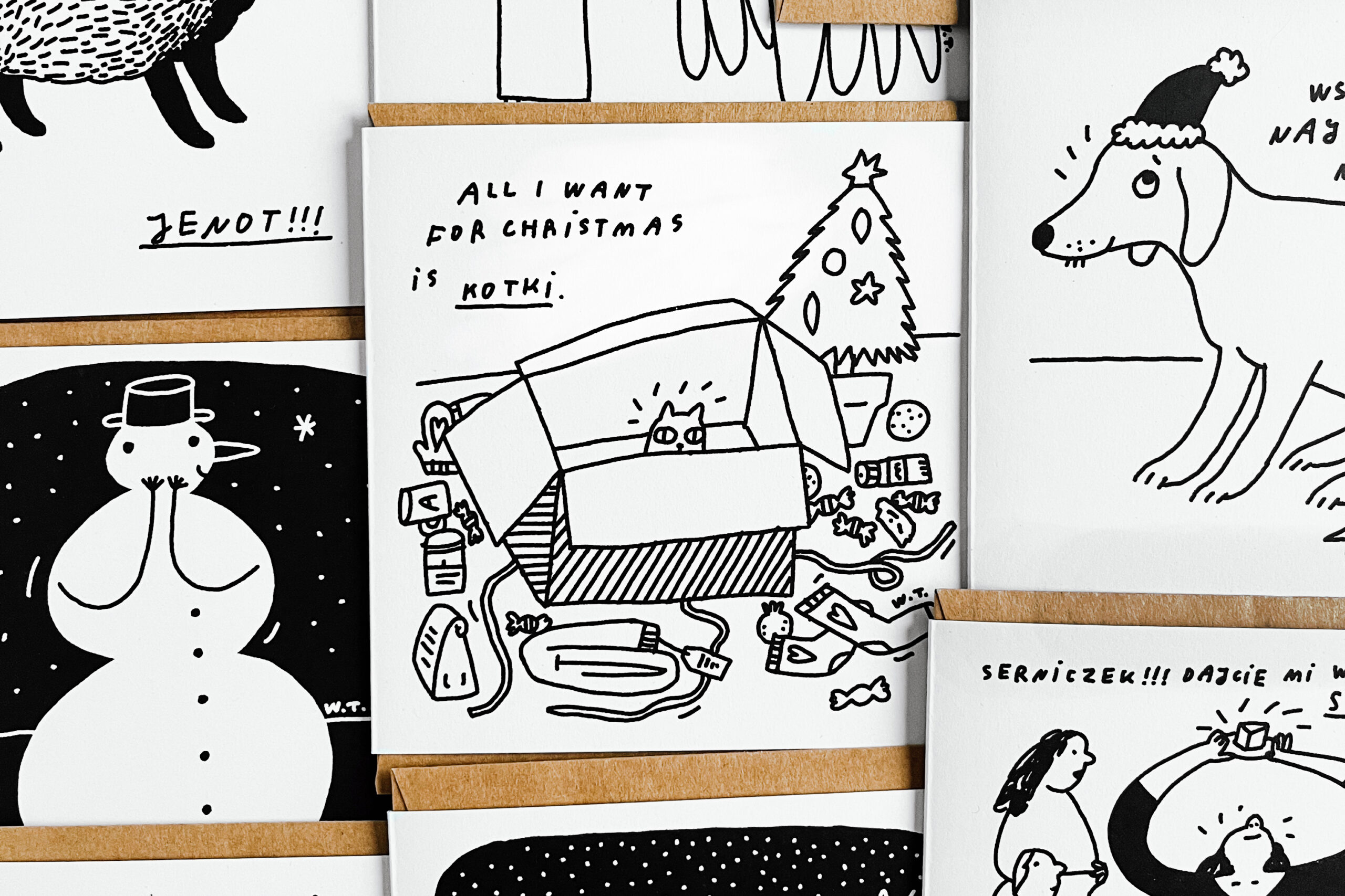 W tym sklepie sprzedaję gotowe prace, ale to nie jest cały zakres mojej działalności. Potrzebujesz personalizowaną kartkę świąteczną dla swojej firmy? Masz pomysł na nowy produkt i potrzebujesz do niego ilustracji? Podoba Ci się projekt z mojego portfolio i chcesz zrealizować ze mną coś podobnego?