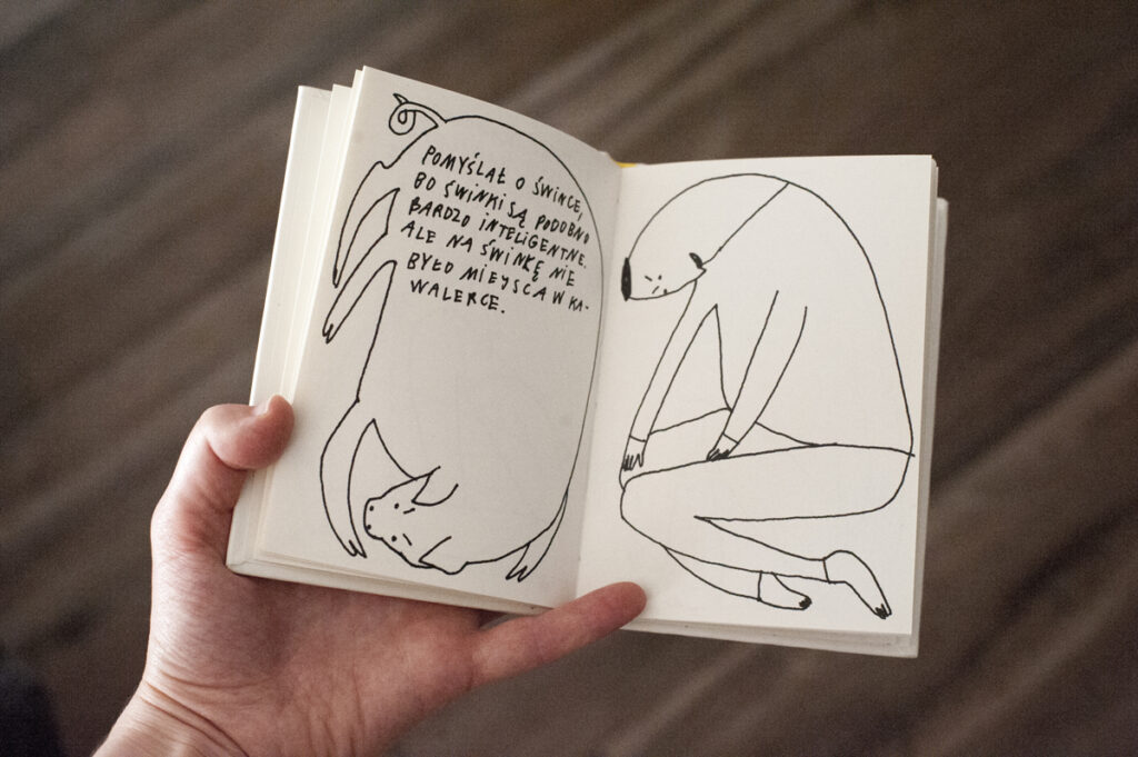 „It excels by a directness of its language, uniqueness of its drawing line and absence of colour – hence by a subtleness with which the story reveals itself. It is amusing, poetic and tender. It is told in perfectly balanced way: with beginning and end, forming a full crescendo. The book’s tiny format – the smallest among all entries – ideally suits this story. This book works in all its aspects; it brings the everyday life to the level of poetry that touches children and adults’ hearts.
