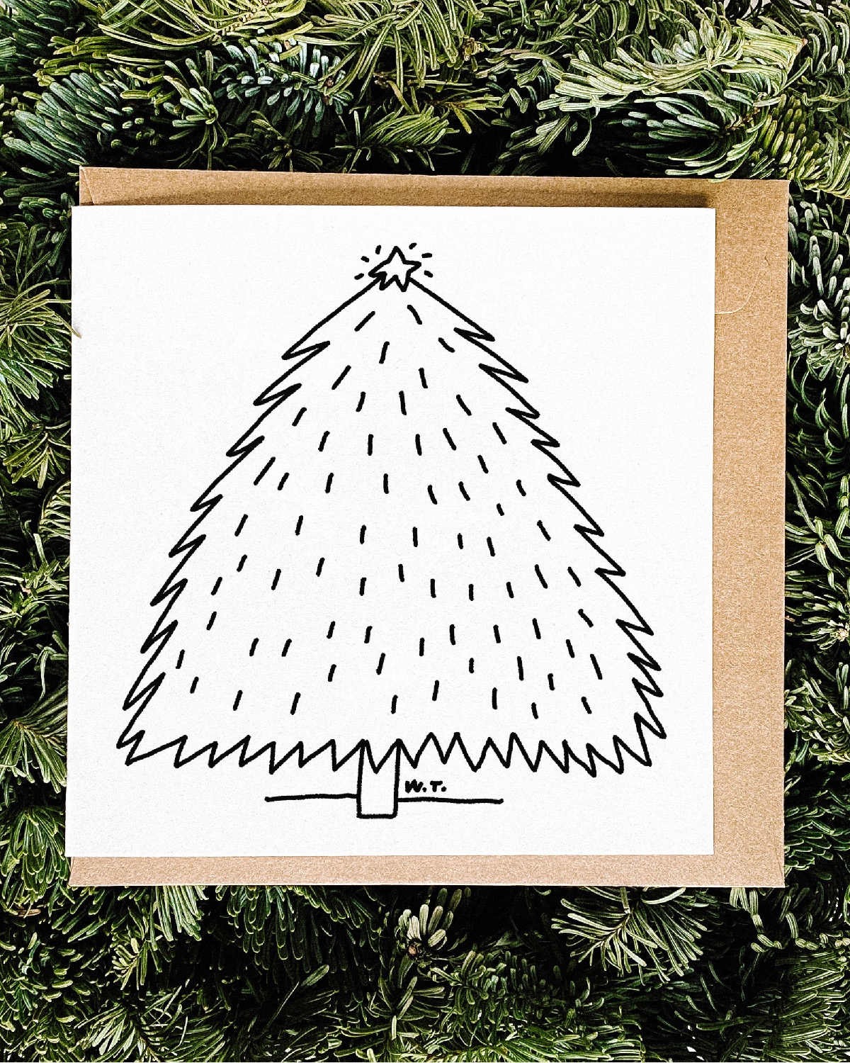 Minimalistyczna kartka świąteczna. Wysokiej jakości druk na przyjemnym papierze w 100 proc. z recyclingu Papier w naturalnym odcieniu bieli, z widocznymi drobinkami, o gramaturze 300 g/m2. Wymiary złożonej kartki: 14×14 cm. Kartka jest pusta w środku. W komplecie brązowa koperta kraft. Czas realizacji zamówienia wynosi 2–3 dni robocze.