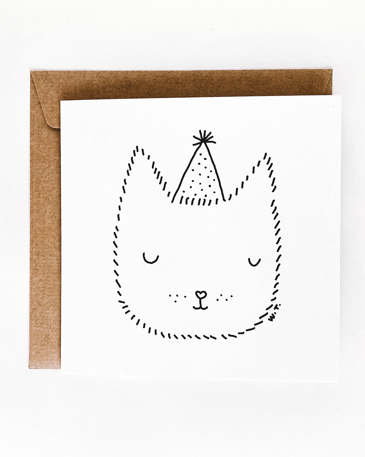 Minimalistyczna kartka z urodzinowym kotkiem.