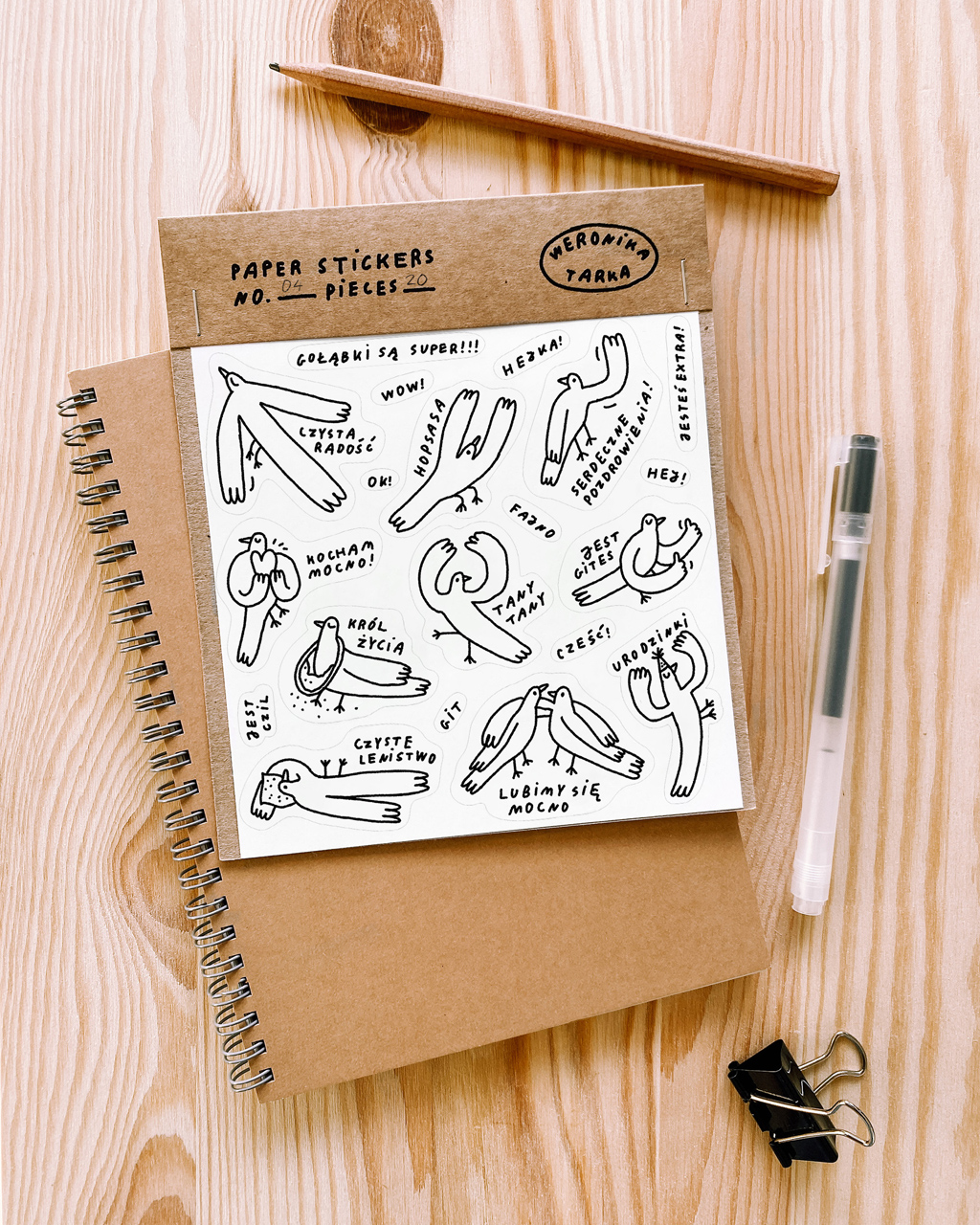 Gru gru! Gołąbki też mają swoje wesołe życie. A z tego życia mogą być wesołe naklejki.